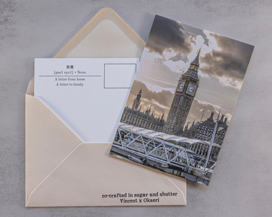 Through the eyes of a gifted London-based Hong Kong artist, these postcards beautifully capture his aesthetic world and personal journeys across both Hong Kong and London. On the back, you'll find beloved local expressions that evoke the comforting warmth and care we associate with home.
